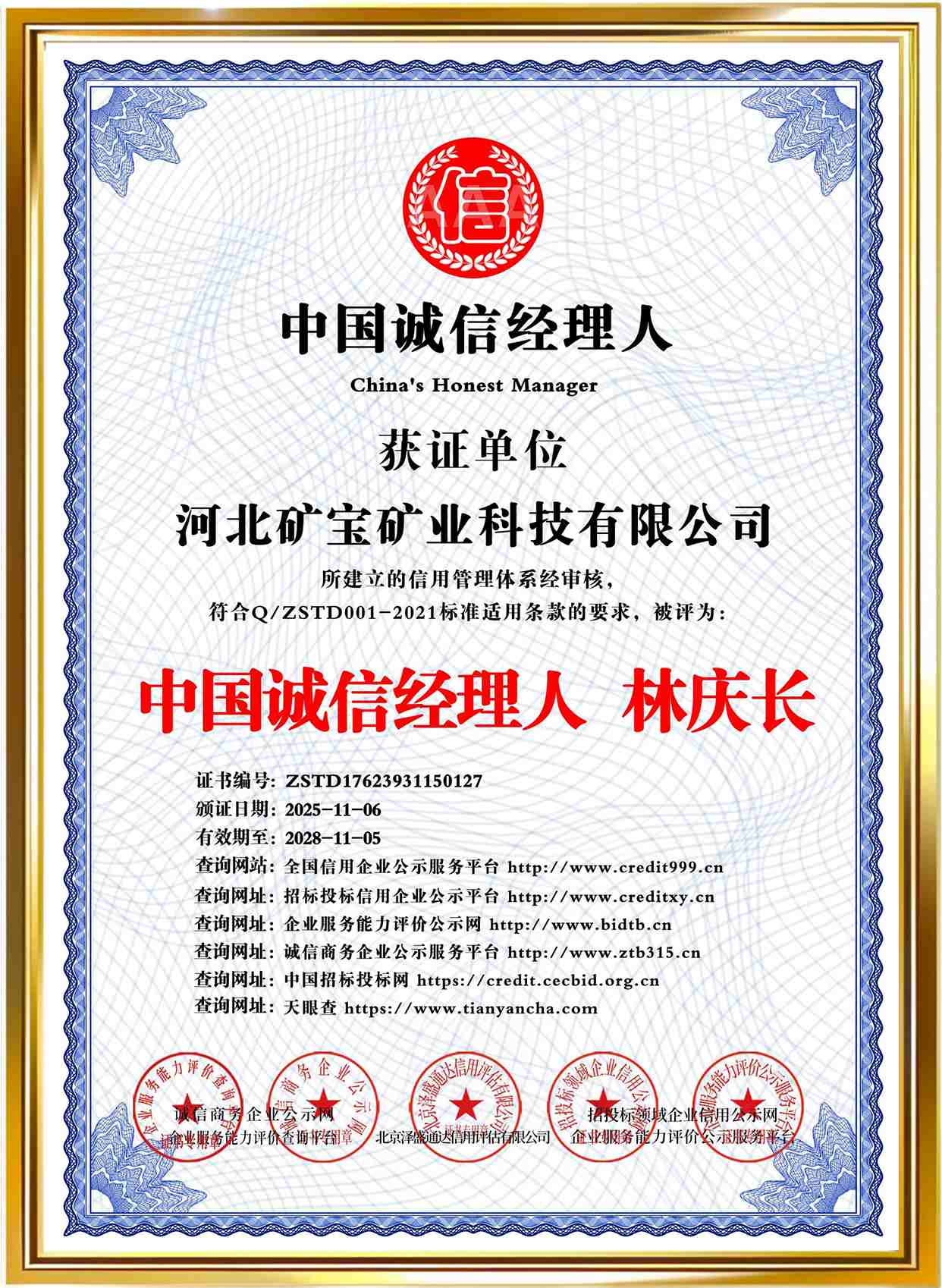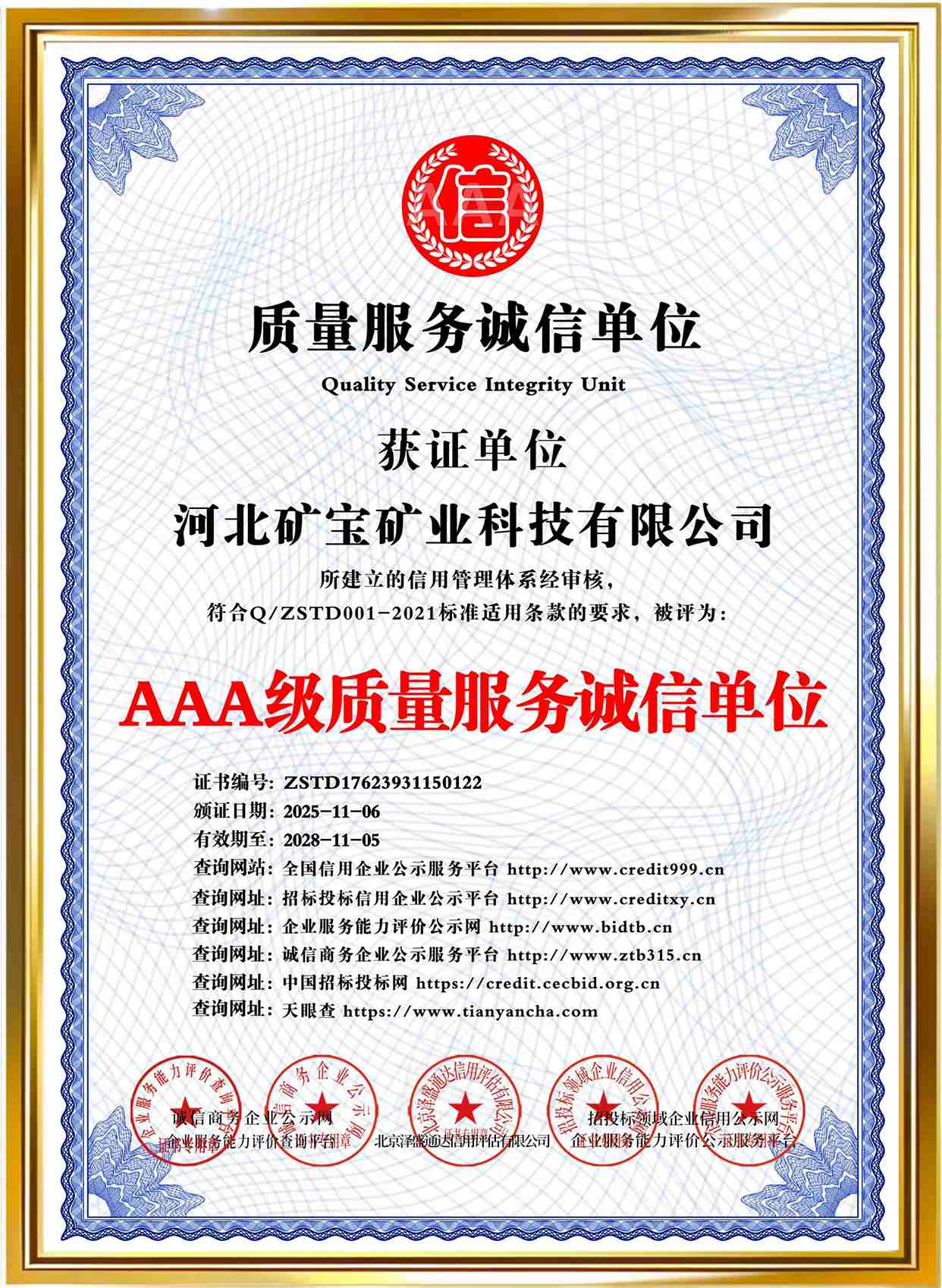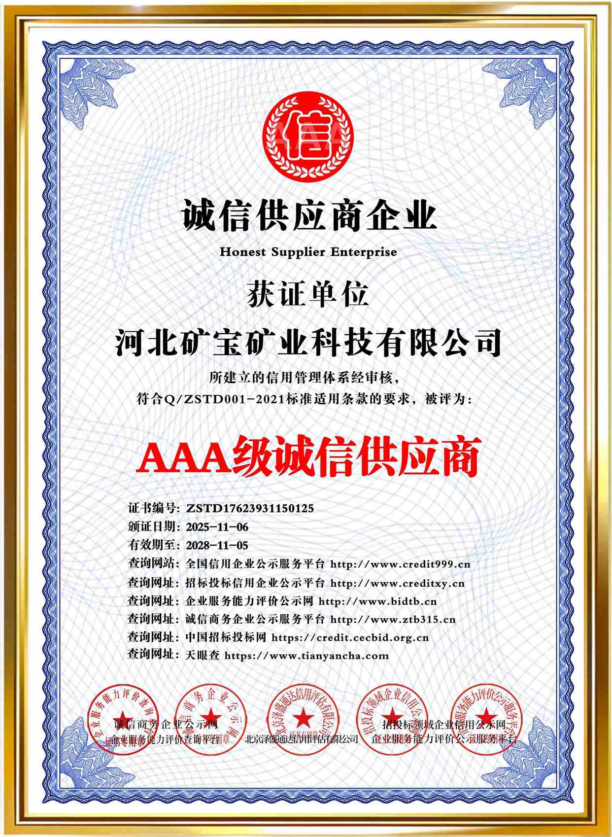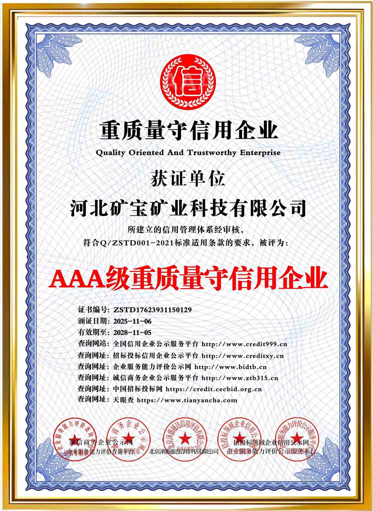Qualification certificate